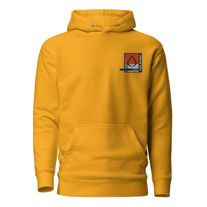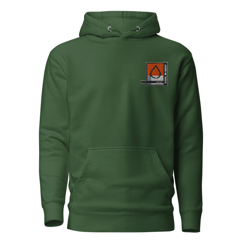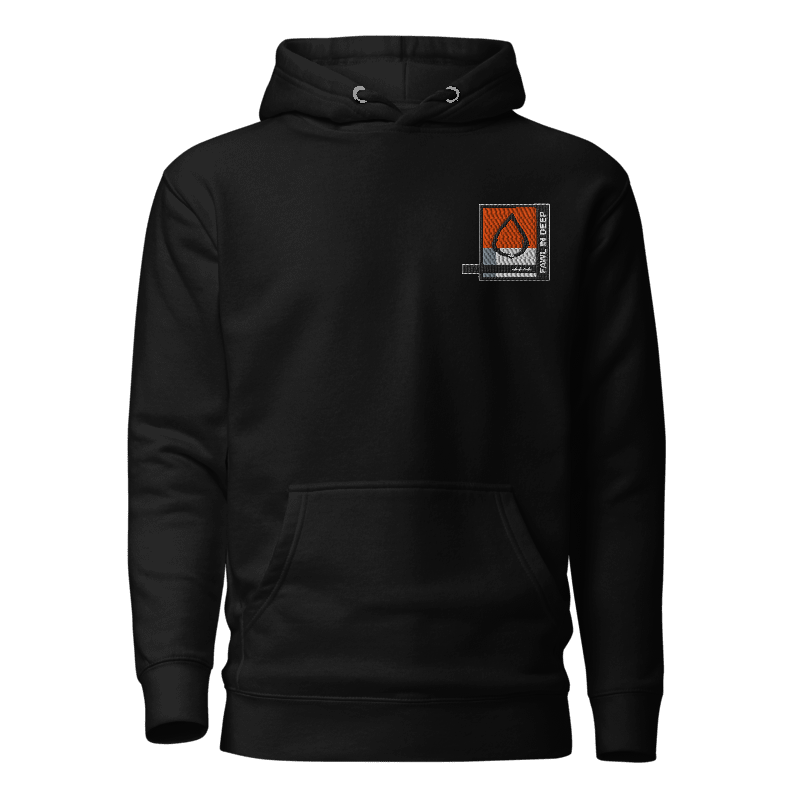 The Fawl In Deep Original Logo Hoodie features our original logo and brand name embroidered over the left chest in black, orange, white, and grey, colors that reflect fear, courage, lessons learned, and self-reflection.